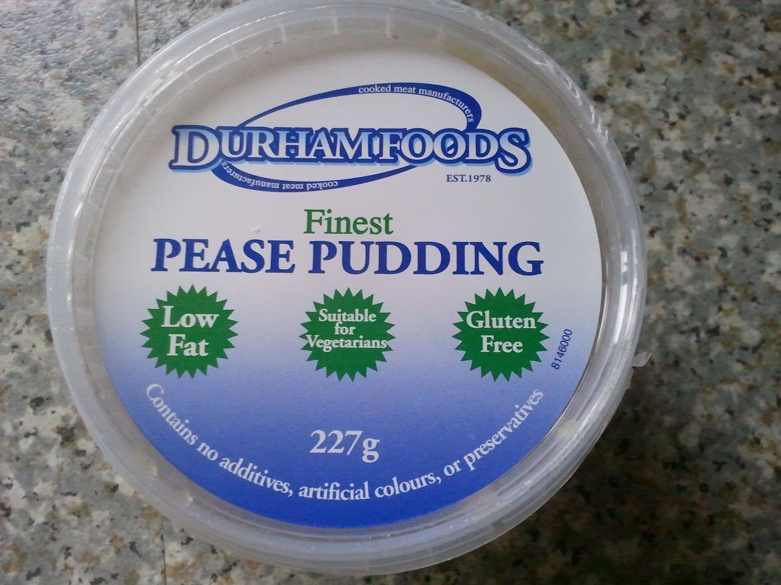 Pease Pudding is incredibly healthy as it says on the lid, low fat, gluten free and suitable for vegetarians. It is made from water, yellow split peas, salt and pepper.